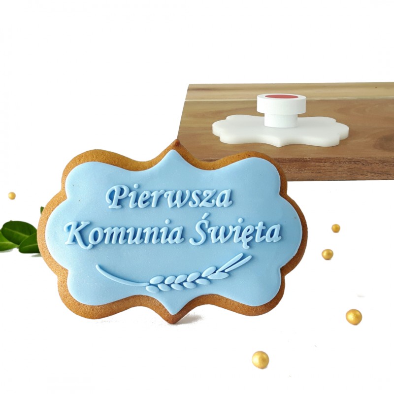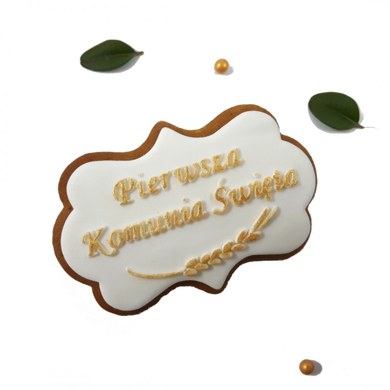Z napisem: „Pierwsza Komunia Święta” oraz grafiką kłosa